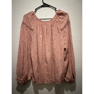 Old Navy Womens Shirt Blouse Large Embroidered Dust Pink long Sleeve Peasant