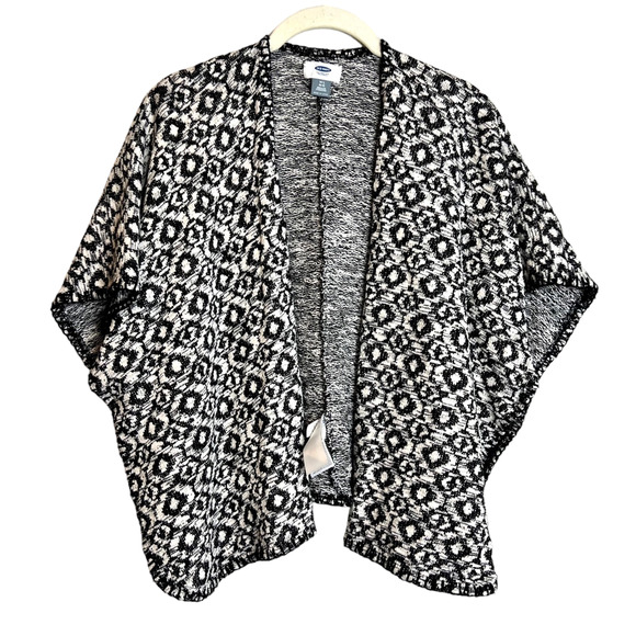 Old Navy Womens Short Open Front Cardigan M/L Black White Knit Kimono Sleeve