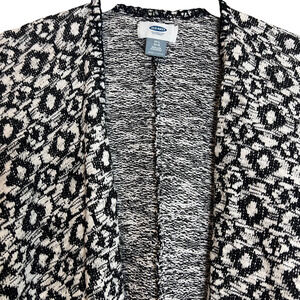 Old Navy Women's Short Open Front Cardigan M/L Black White Knit Kimono Sleeve