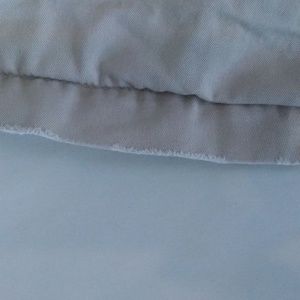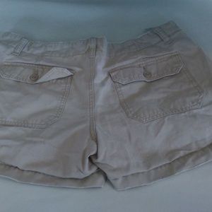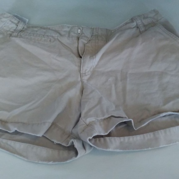 Used but no holes or stains. Signs of wear is only in the wash. It is obvious they have been washed a lot as they are not a deep navy anymore but still excellent shorts. Unlike all the rest of the shorts in my closet, these are distressed around the edges. They were bought that way. I have pictured this so you can see.
