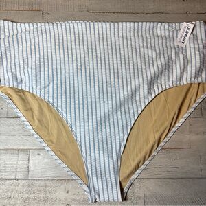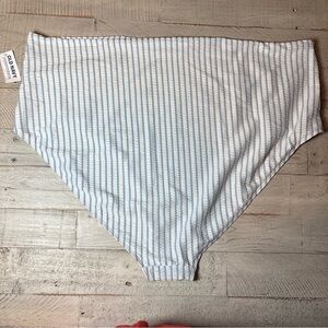 Old Navy Women's Size 4X Striped Bikini Top Adjustable Straps Blue/White NWT! High Waisted Striped Classic Bikini Swim Bottom. Elastic high rise waistband. Includes hygienic sticker. Quick dry texture swim fabric that is comfortable. Built in UPF sun protection. 95% polyester, 5% spandex.