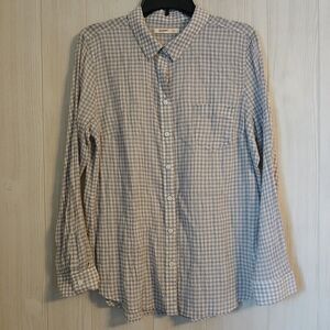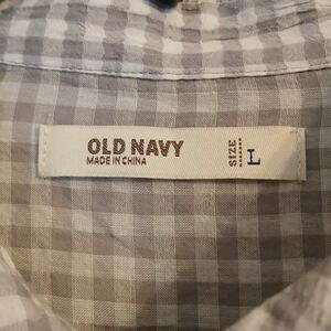 Old Navy Women’s Size L Gingham Button Up Shirt Gray White Long Sleeve Casual