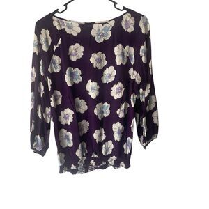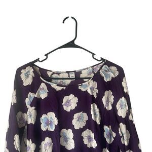 Old Navy Women's Size Medium Purple Hibiscus Floral 3/4 Sleeve Top