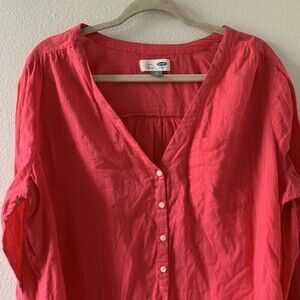 Old Navy Womens Size XL Pink Stripe V Neck Button Up Blouse