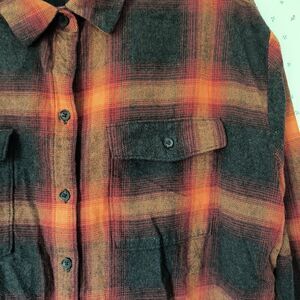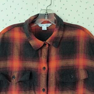 Old Navy Womens Size XL Plaid Flannel Boyfriend Shirt Fall Hues Swifty Concert