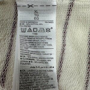 This Old Navy top in XL offers a classic look with its white and burgundy stripes. The knot front adds a stylish touch, suitable for various occasions. Crafted from a cotton and polyester blend, it offers a comfortable and breathable fit.