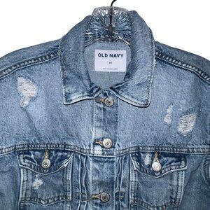 Old Navy Women's Size XS Distressed Denim Button Up Jacket Cotton Light Wash
