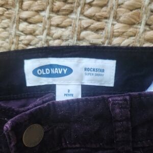 Stylish skinny jeans. Perfect for any occasion. Comfortable fit. Dark purple color and soft velour material. stretchy