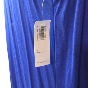 This stunning Old Navy sleeveless dress in vivid blue combines comfort and effortless style. Crafted with a premium blend of viscose and spandex, the relaxed silhouette ensures a flattering fit and maximum breathability. Its Large Petite cut makes it especially tailored for petite frames, offering optimal proportion and a comfortably relaxed yet chic look. The tag showing “machine wash cold” highlights easy care, making it a practical wardrobe staple. The soft and stretchy fabric flows elegantly, making it an excellent choice for versatile wear. Whether styled casually or elevated with accessories, this dress embodies simplicity and sophistication.