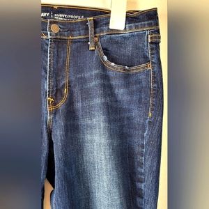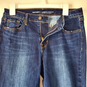Old Navy Women's Small Blue Distressed Curvy Profile Mid-Rise Dark Wash Jeans