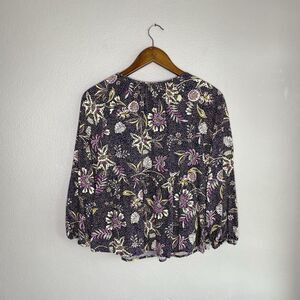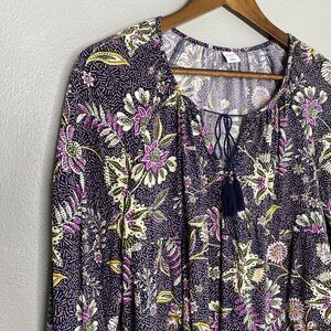Old Navy Women’s Small Floral Boho Cottage Long Sleeve Tassel Navy Blue Top