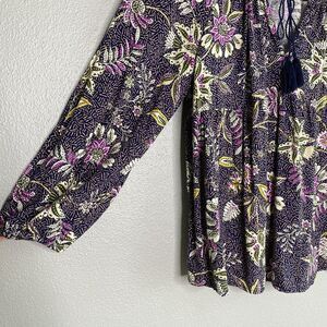 Old Navy Womens Small Floral Boho Cottage Long Sleeve Tassel Navy Blue Top