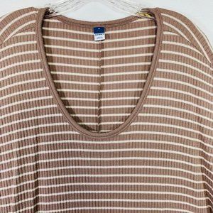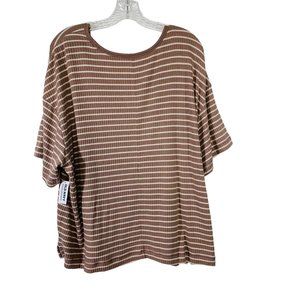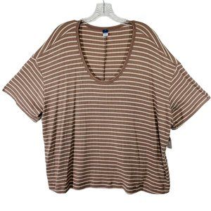 Old Navy Womens Soft Knit Striped Sweater Sz. 2X Scoop Neck Brown Short Sleeve