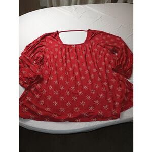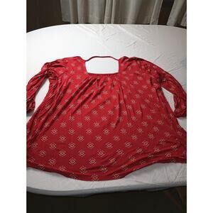 Old Navy Women's Square Neck Long Sleeve Blouse All Over Print, Size 4X Red