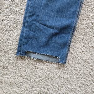 Stylish straight leg jeans. Classic blue denim. Distressed details for a trendy look. Perfect for casual wear.