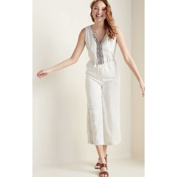Old Navy Women’s Striped Wide Leg Sleeveless Linen Embroidered Pant Suit Size S