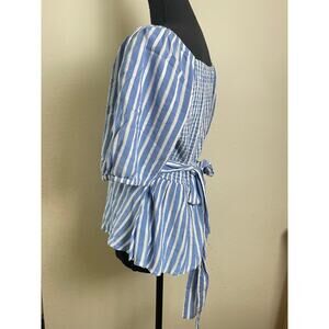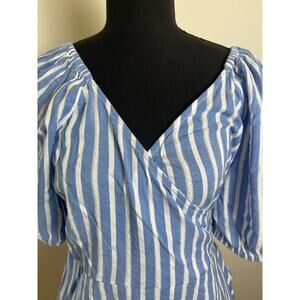 Old Navy Women's Striped Wrap Baby Doll Top Blue M Cottage Pastoral Feminine