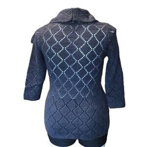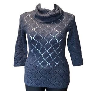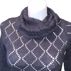 Old Navy Womens Sweater Cowl Neck Open Loose Knit Crochet Pullover Gray Large
