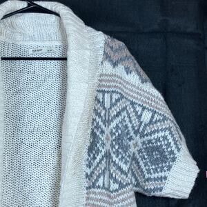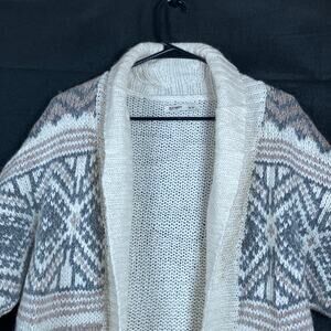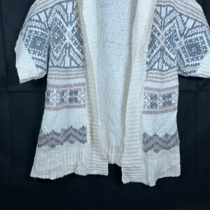 Old Navy Womens Sweater Cream Aztec Open Front Knit Short Sleeve Wool Blend S