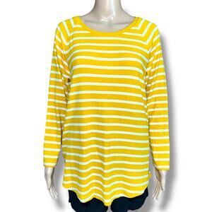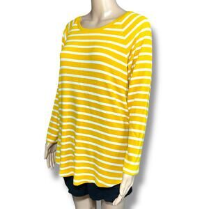 Old Navy Womens Sweater Striped Long Sleeve Tunic Pullover Yellow White Med Tall