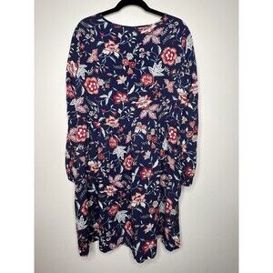 Old Navy Womens Swing Dress Sz L Navy Floral Long Sleeve Keyhole Flowy Causal