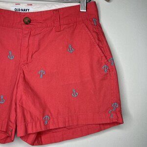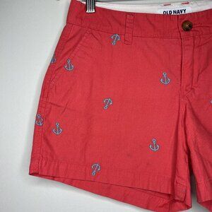 Old Navy Women’s Sz 2 Pink Watermelon Color Preppy Shorts Blue Anchors Nautical