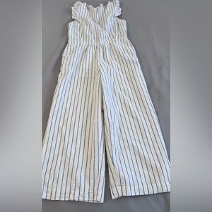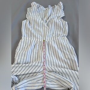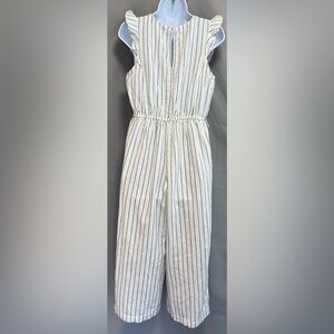 Old Navy Womens Sz Small White Striped Sleeveless Ruffled Linen Capri Jumpsuit!
