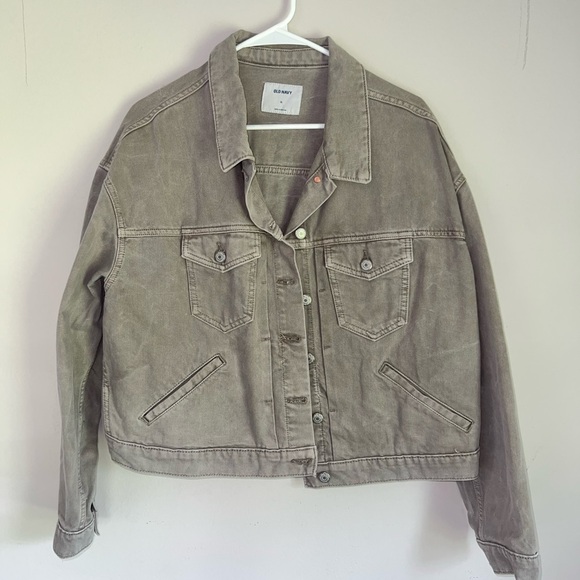 Old Navy Women's Tan/Grey Denim Jacket with Buttons and Pockets