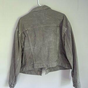 This Old Navy jean jacket in a versatile tan/grey shade offers a timeless trucker style perfect for everyday wear. Crafted from durable denim, it features a cropped length that adds a modern touch to its classic design. Ideal for layering, this jacket is a staple piece for any casual wardrobe.