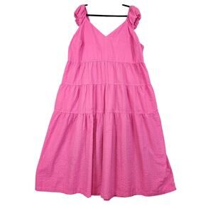 Old Navy Womens Tiered Seersucker All Day Maxi Dress Plus Size 3X Hot Pink