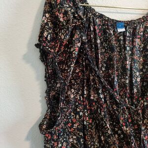 Old Navy Womens Top 4X Black Floral Smocked Cotton Blend Peasant Blouse