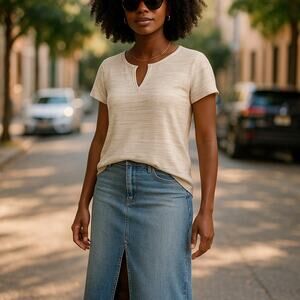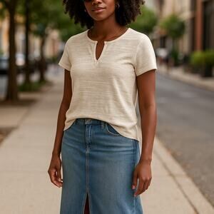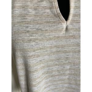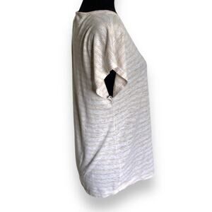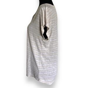 Old Navy Womens Top Size S Beige White Stripe Split Neck Knit Short Sleeve
