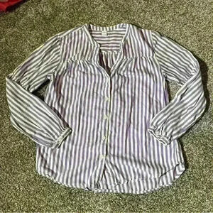 Old Navy Women's Top Size S Long Sleeve Purple And White Striped V Neck