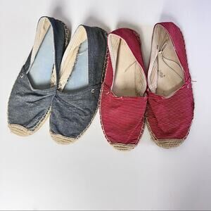 Old Navy Women’s Two Pairs of Canvas Slip On Flats Red and Blue Sz 8