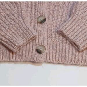Old Navy Womens V Neck Cropped Fuzzy Cardigan Pale Pink Sweater Poly Blend NWT