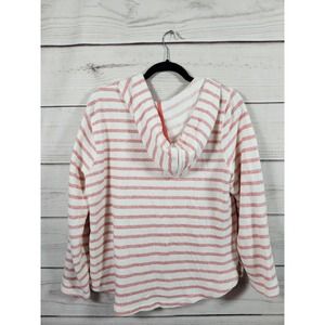 Old Navy Women's White Red Striped Long Sleeve Hooded Beach Fleece Sweater Size L