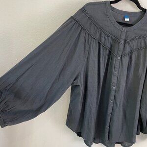 Old Navy Womens XL Gray Button Up Blouse Boho Long Sleeve Shirt Top