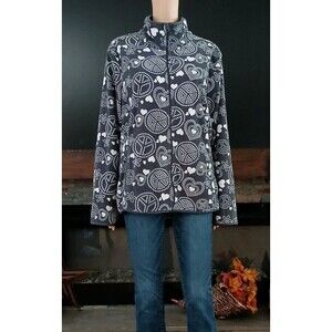 Old Navy Women's XL Zip Up Longe Sleeve Peace Sign Casual Comfy Sweater Charcoal