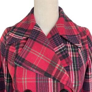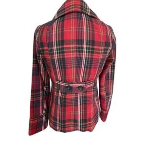 Old Navy Women's XS classic Red Plaid Wool Peacoat Mid-Length Dark academia