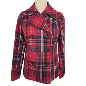 Keywords: Old Navy, academia, preppy, Ivy, equestrian, Pea Coat, XS, Wool, Regular, Women, Red, Plaid, Mid-Length, Winter, Button, Casual, Long Sleeve, Regular.