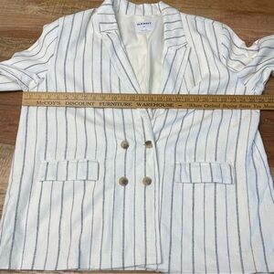 Old Navy Women's XXL Double-Breasted Linen-Blend Blazer Navy Stripe plus size
