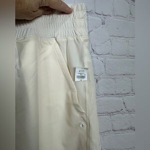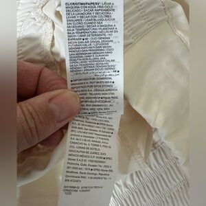 waist flat 26.5", length 20", inseam 4.5", rise 17", front slit pockets, back zip pocket, there are a couple of marks that should wash out but they are brand new with tags