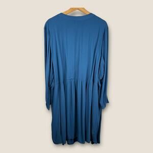 Old Navy Womens size 3X Long Sleeve Pleated Pintuck Tunic Dress Blue