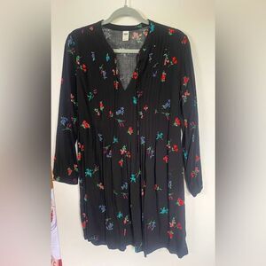 This beautiful black floral dress from Old Navy is a must-have for every woman's wardrobe. With a pleated design and V-neckline, it is perfect for any occasion, from casual to workwear, parties, weddings, holy communions, and business events. The long sleeves and lightweight fabric make it ideal for all seasons, whether you want to wear it in summer, fall, or spring.