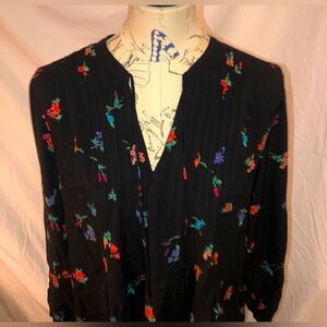 Old Navy Women's Boho Small Dress Trim Black/Floral Tie Neck cottage core