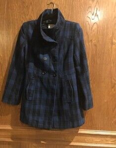 Old Navy Wool Blend Blue checkered Jacket Womens Medium