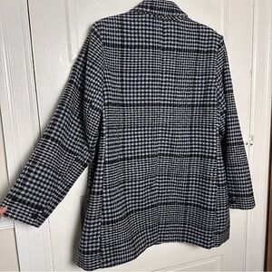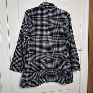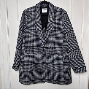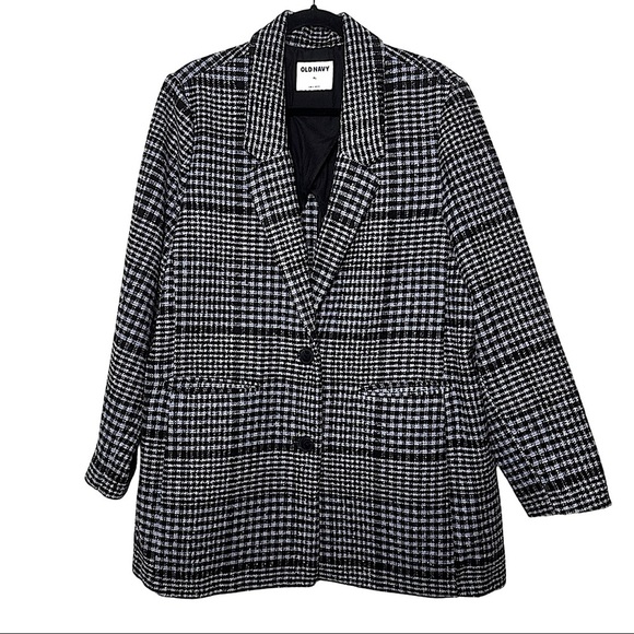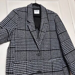 Old Navy Women’s Wool Blend Plaid Blazer Coat Button Down Relaxed Fit Classic Preppy Blue Gray & Black NWOT