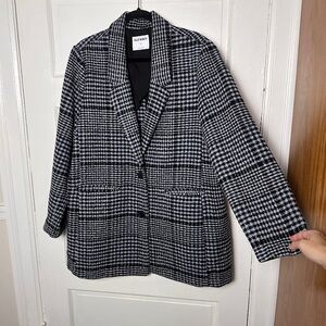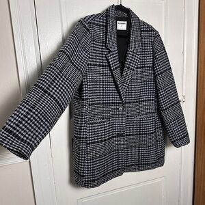 Old Navy Wool Blend Plaid Blazer Coat Classic Academia Preppy NWOT Relaxed Fit