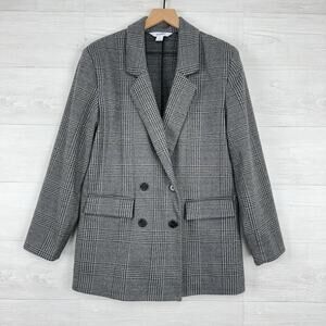 Old Navy Wool-like Double Breasted Blazer Women M Plaid Houndstooth Gray Office