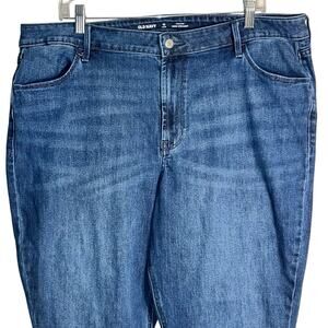 Old Navy High-Rise Wow Straight Jeans in size 18 Long. These jeans feature a classic straight-leg silhouette in a versatile medium blue wash with light fading for a flattering finish. Designed with a high-rise waist and full-length inseam for taller frames, they combine comfort and style with a soft, stretchy fabric blend.